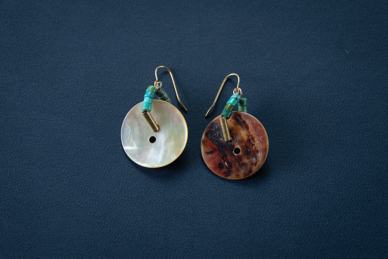 貝殻とターコイズが組み合わさった、シンプルでありながら存在感のあるピアスです。